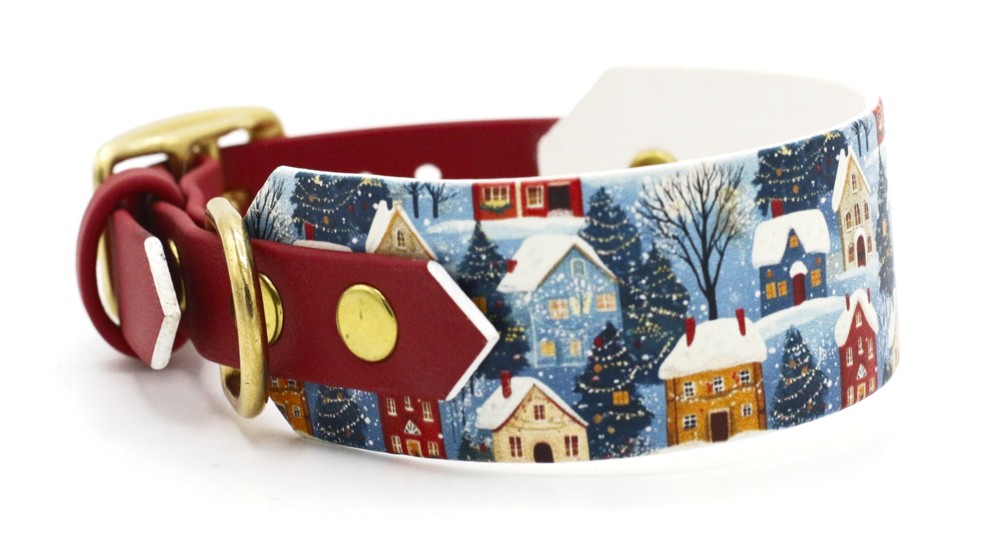 SOFORTKAUF: Für die Weihnachtszeit: das besondere BioThane® Halsband "Christmas Village" in extra breit