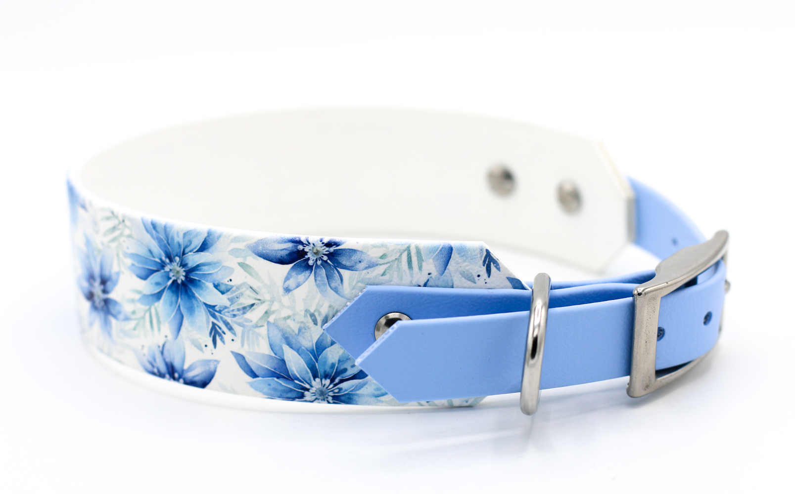 Das breite BioThane® Halsband "Blue Lily" ist ein absoluter Traum in zartem Blau! Dank des strapazierfähigen BioThane® Materials ist es wasserfest, pflegeleicht und geruchsneutral. Die UV bedruckte BioThane® im breiten Mittelteil ist dicker als die normal übliche Beta BioThane® und dadurch sehr weich, flexibel und robust. Dadurch hat es auch den optimalen Tragekomfort. Durch seine Breite mit 38mm eignet es sich für mittelgroße und große Hunde und auch sehr gut für Windhunde, Podencos und andere schlanke Hundehälse. Der Schnallenteil verjüngt sich auf leichte 19mm. Entscheide Dich für ein BioThane® Halsband der Extraklasse und Du und Dein vierbeiniger Liebling werdet einfach traumhaft schick sein!