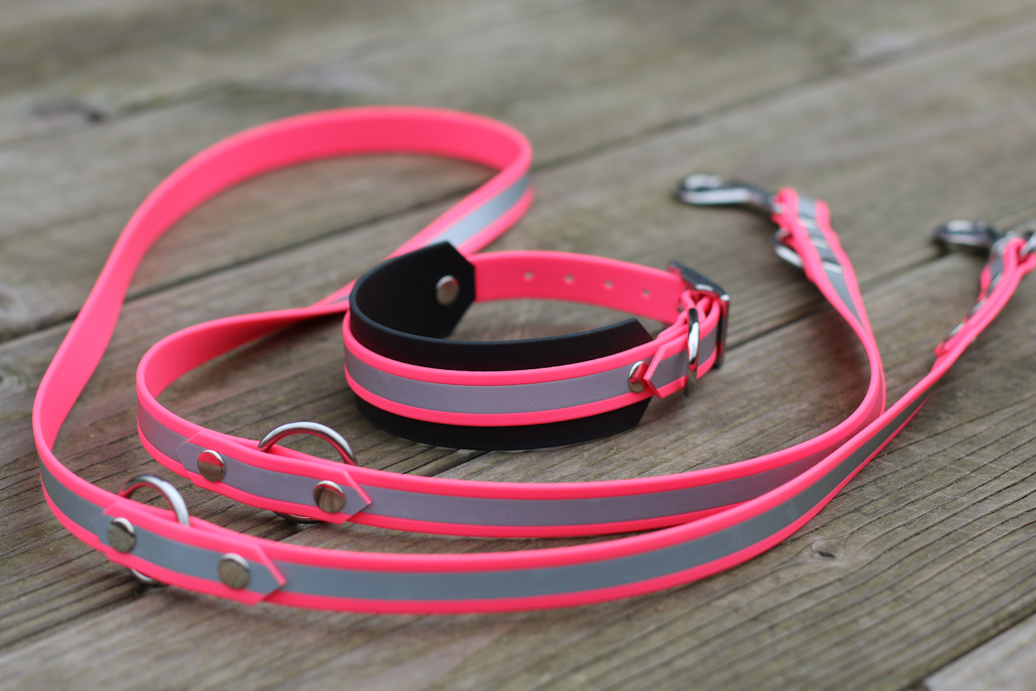 Dreifach verstellbare Hundeleine reflektierend aus BioThane® - für bessere Sichtbarkeit