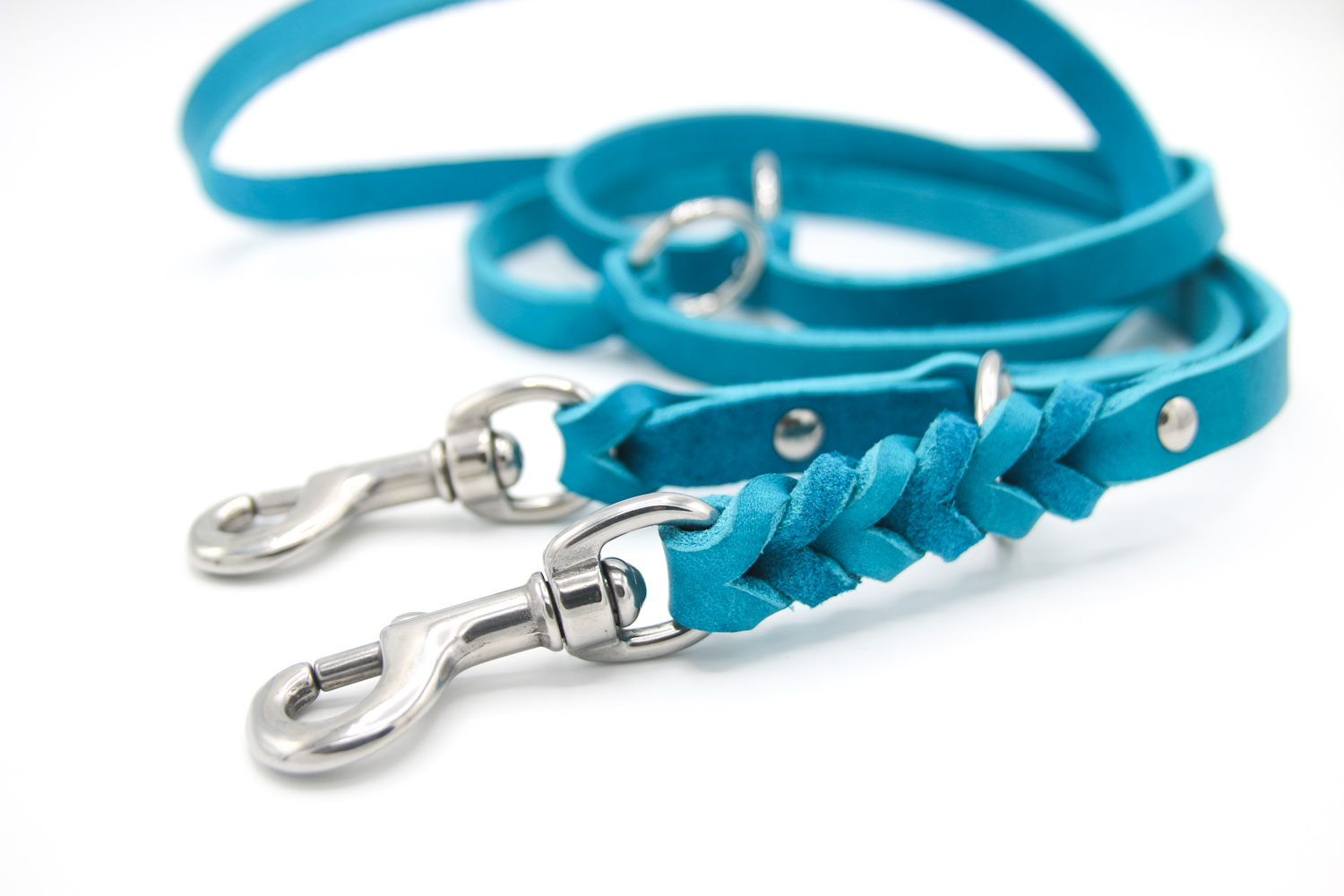Die geflochtene Lederleine ist aus hochwertigen Materialien von Hand angefertigt und hat durch ihre 3 einstellbaren Längen viele Einsatzmöglichkeiten. Als Hundeleine zum Umhängen wird sie schnell zum eleganten Hingucker und Du hast die Hände frei!